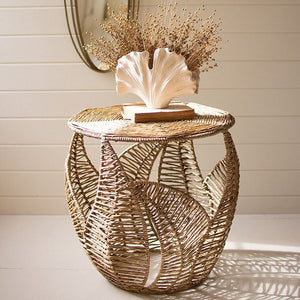Tropical décor is all about natural elements and light, airy styling. Our Florida Keys Sea Grass Palm Side Tables overflow with both! A striking tropical palm frond design base, hand-woven in Haiti, gives an open, natural coastal look to your seaside home.