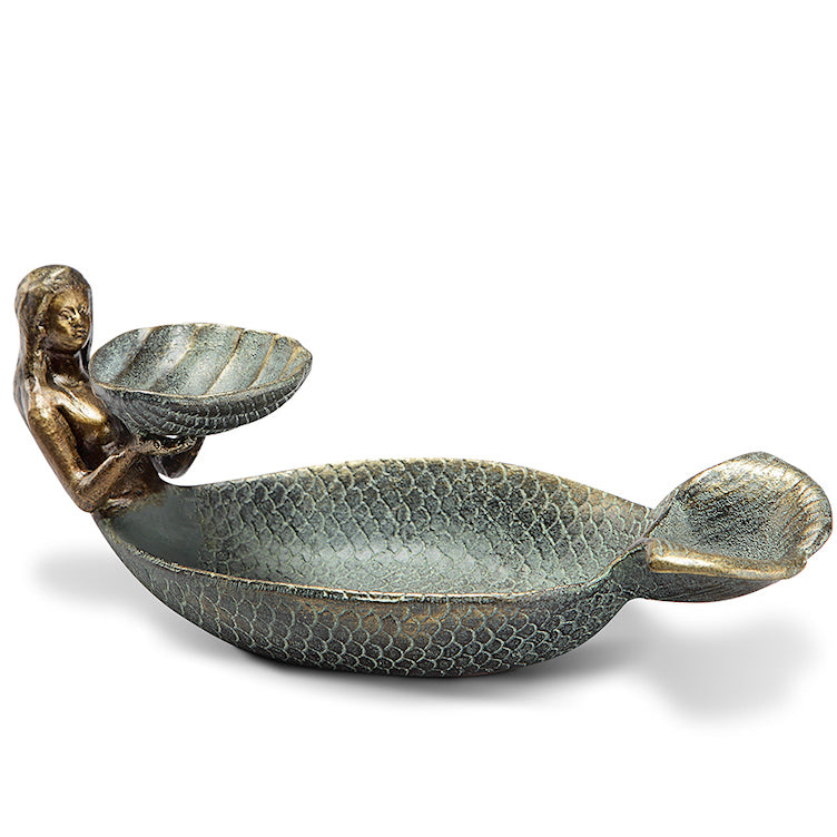 Our Reclining Mermaid Catchall is a convenient and versatile accent piece for your coastal home. Perfect in the bath as a soap holder, or in the kitchen as a sponge holder, it also makes a charming ring/jewelry holder as well as an all-around catchall for keys and other small items.