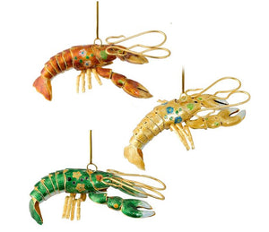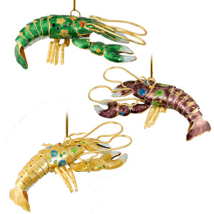 In the 600 year-old tradition of Imperial Enameling, our Cloisonné ornaments are handcrafted by talented artisans using fired enamel on copper with gold plate accents. Our Articulated Reef Lobster ornaments are both delicate and detailed, adding a sophisticated coastal touch to your beach house Christmas tree. Tiny hidden hinges allow them to "swim" to and fro as they hang from the tree branches.