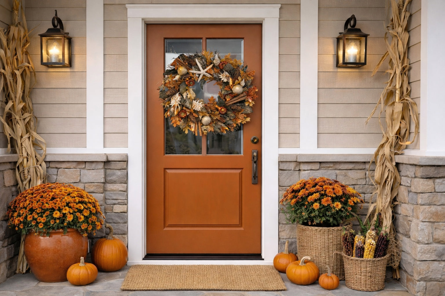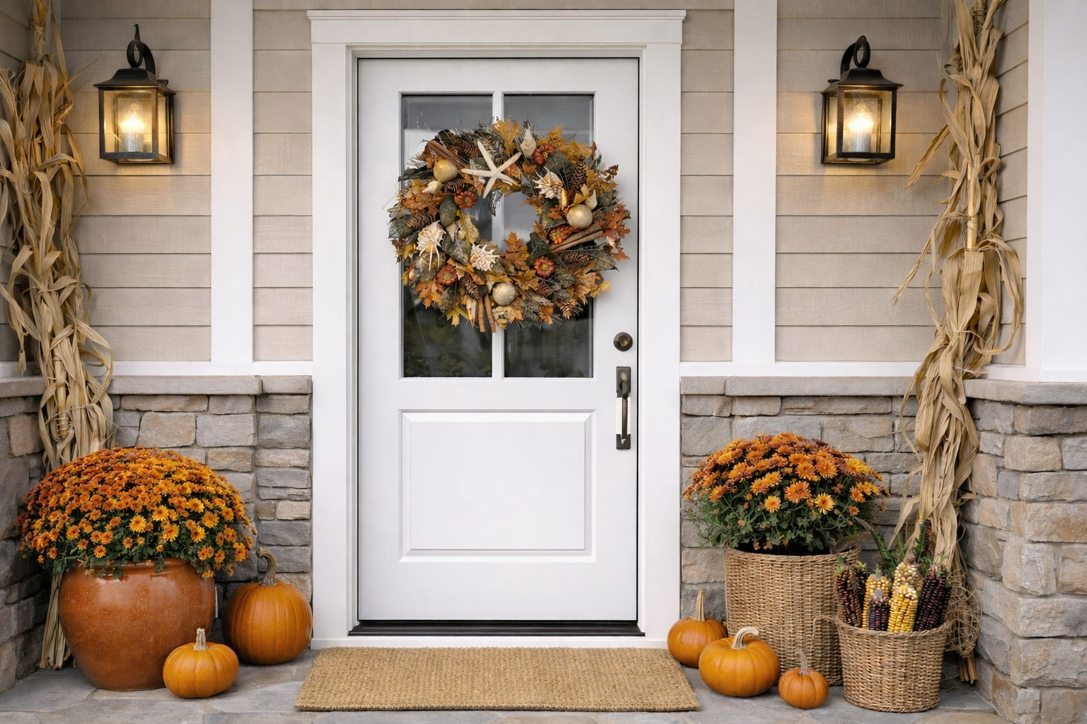 Made in USA. Wreath is available in a standard 20" diameter, suitable for most doors.